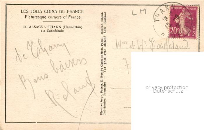 13531989 carte postale Thann Haut Rhin Elsass Cathedrale postalisch gelaufen Erhaltung siehe scans [LiesaD40] KatCode: 11170068668334