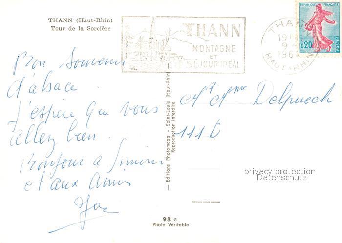 13593842 Thann Haut Rhin Elsass Tour de la Sorciere postalisch gelaufen Erhaltung siehe scans [WerneD78] carte postale Wern Katcode 11170068668334