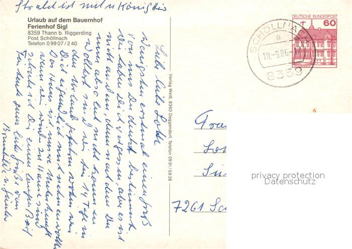 73719383 alte Postkarte Thann Riggerding Ferienhof Sigl Aussenansicht postalisch gelaufen Erhaltung siehe scans [LiesaD40] KatCode: 11110009271149