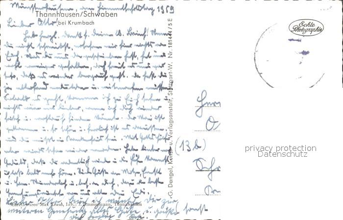 72130097 alte Postkarte Thannhausen Schwaben Kirche postalisch gelaufen Erhaltung siehe scans KatCode: 11110009774185