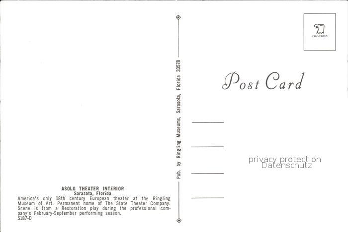 Theater Asolo Theater Interior Sarasota Florida postalisch nicht gelaufen Erhaltung siehe scans