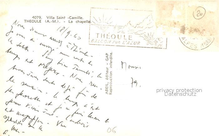 13493421 carte postale Theoule-sur-Mer Villa Saint Camille La Chapelle postalisch gelaufen Erhaltung siehe scans [FriedD77] KatCode: 11170006106138