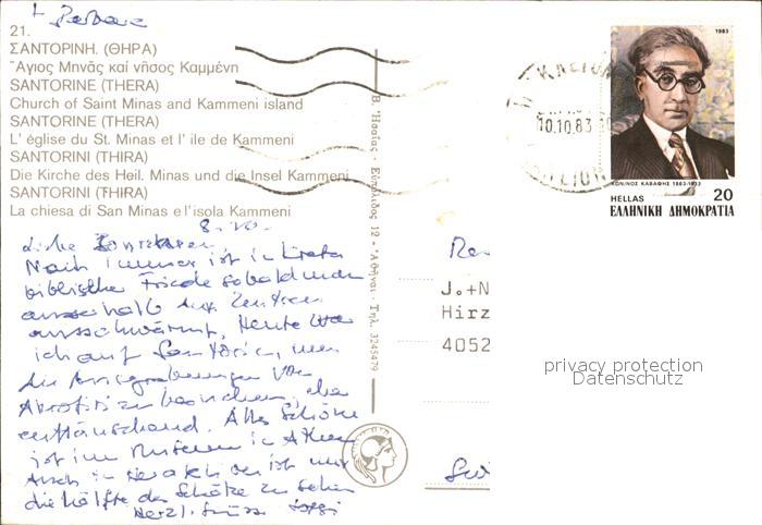 old postcard Thera Santorin Kirche des Heiligen Minas postalisch gelaufen Erhaltung siehe scans