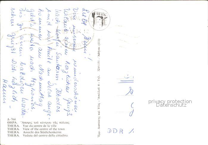 old postcard Thera Santorin Staedtchenkerns postalisch gelaufen Erhaltung siehe scans