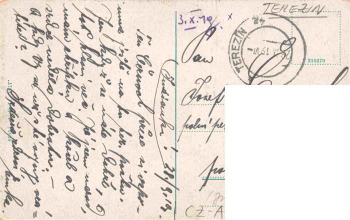 73975380 old postcard Theresienstadt Terezin CZ Postgebaeude postalisch gelaufen Erhaltung siehe scans [FriedD77] KatCode: 11520