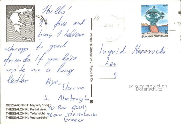 old postcard Thessaloniki Fliegeraufnahme postalisch gelaufen Erhaltung siehe scans