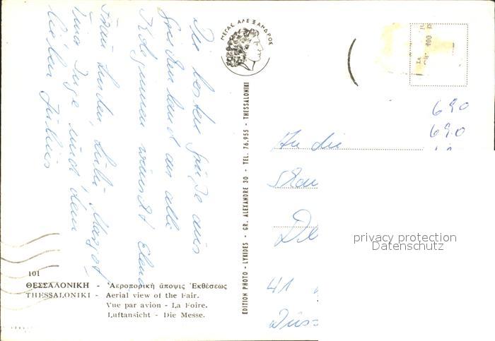 old postcard Thessaloniki Fliegeraufnahme Messe postalisch gelaufen Erhaltung siehe scans