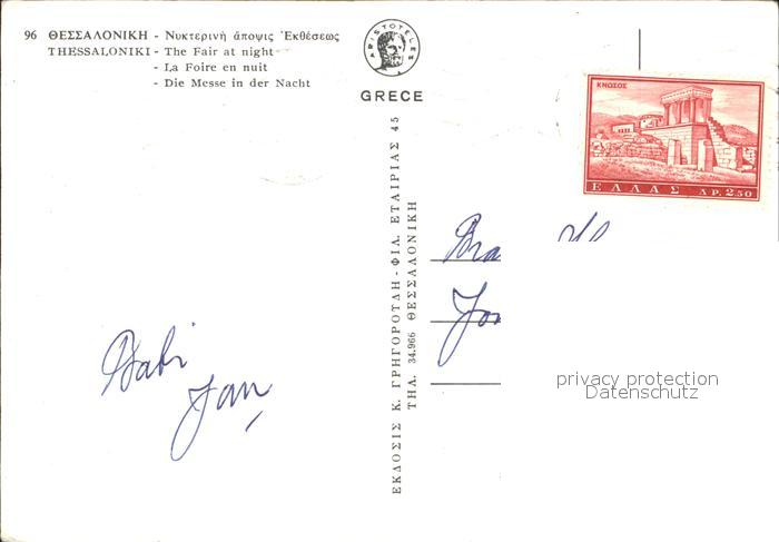 Thessaloniki Messe Nachtaufnahme postalisch nicht gelaufen Erhaltung siehe scans