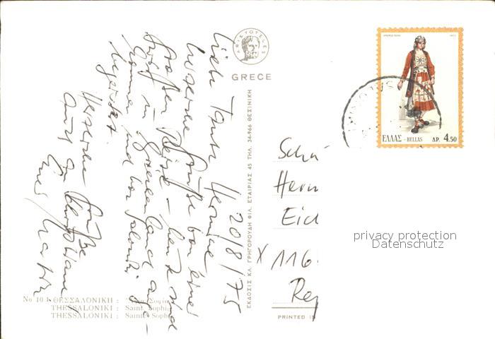 old postcard Thessaloniki Sante Sophie postalisch gelaufen Erhaltung siehe scans