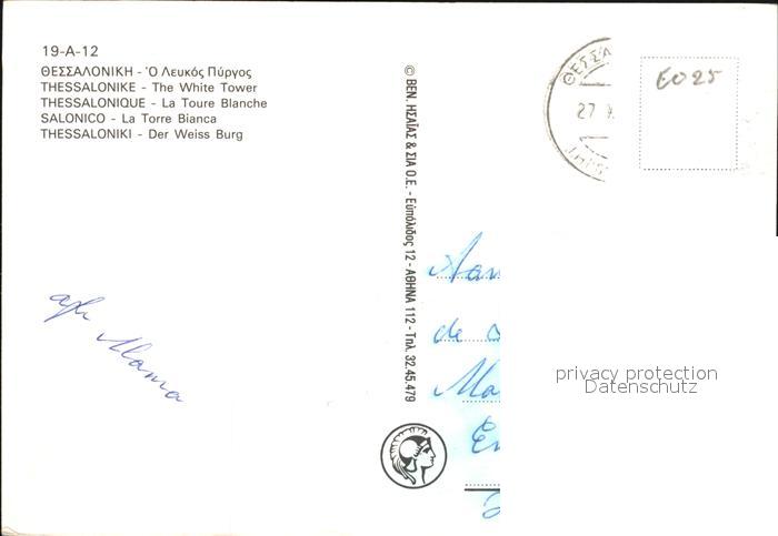 old postcard Thessaloniki Weisse Burg postalisch gelaufen Erhaltung siehe scans