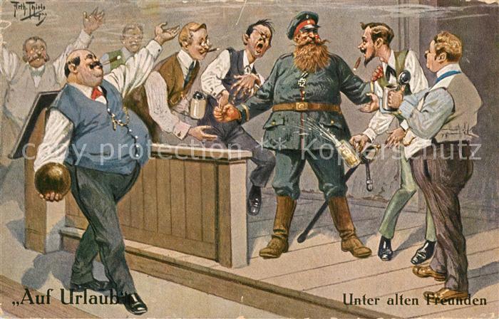 33577484 alte Postkarte Thiele Arthur Auf Urlaub unter alten Freunden Kegeln Zigarren Bier postalisch gelaufen Bahnpost Erhaltung siehe scans [PaolaD17] KatCode: 22240000005300