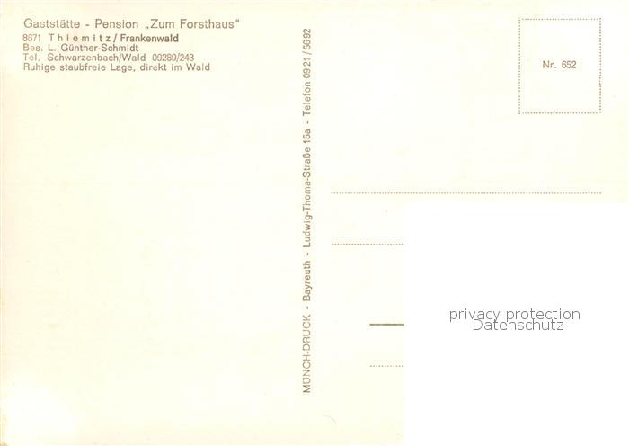 73841170 Thiemitz Wald Gaststaette Pension Zum Forsthaus postalisch nicht gelaufen Erhaltung siehe scans [WerneD78] KatCode: 11110009475169
