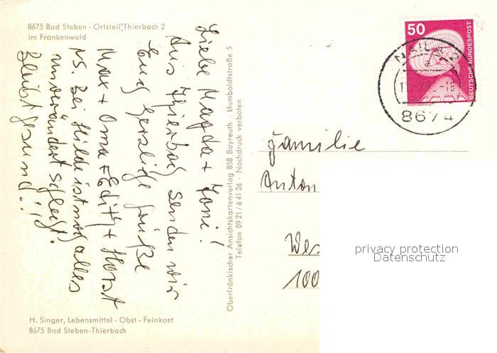 72630770 alte Postkarte Thierbach Bad Steben postalisch gelaufen Erhaltung siehe scans [LiesaD40] KatCode: 11110009475112