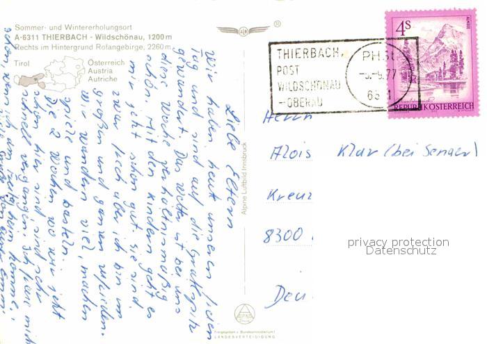 72679915 alte Postkarte Thierbach Wildschoenau Fliegeraufnahme Rofangebirge mit Gratlspitz postalisch gelaufen Erhaltung siehe scans [LiesaD40] KatCode: 11390335070530