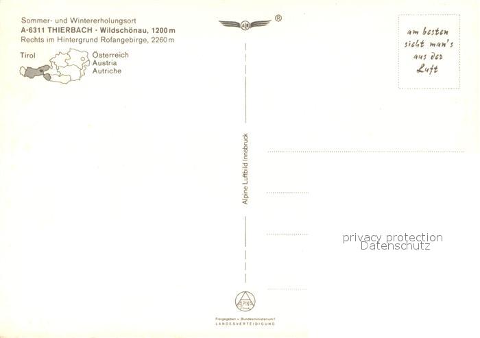 13217008 Thierbach Wildschoenau Fliegeraufnahme postalisch nicht gelaufen Erhaltung siehe scans [LiesaD40] KatCode: 11390335070530