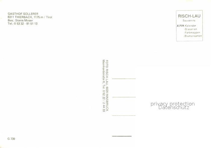 12603854 Thierbach Wildschoenau Gasthaus Sollerer postalisch nicht gelaufen Erhaltung siehe scans [LiesaD40] KatCode: 11390335070530