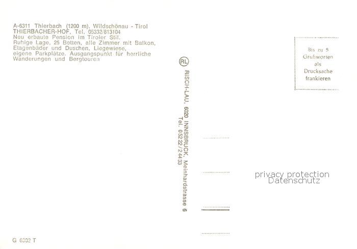 12954890 Thierbach Wildschoenau Pension Thierbacher-Hof postalisch nicht gelaufen Erhaltung siehe scans [NatalD47] KatCode: 11390335070530