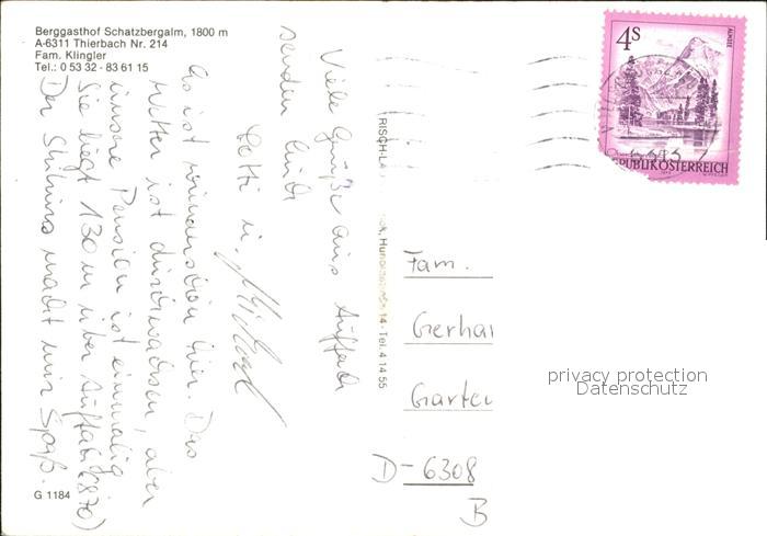 72455734 alte Postkarte Thierbach Wildschoenau Skiparadies Schatzbergalm Winter postalisch gelaufen Erhaltung siehe scans KatCode: 11390335070530