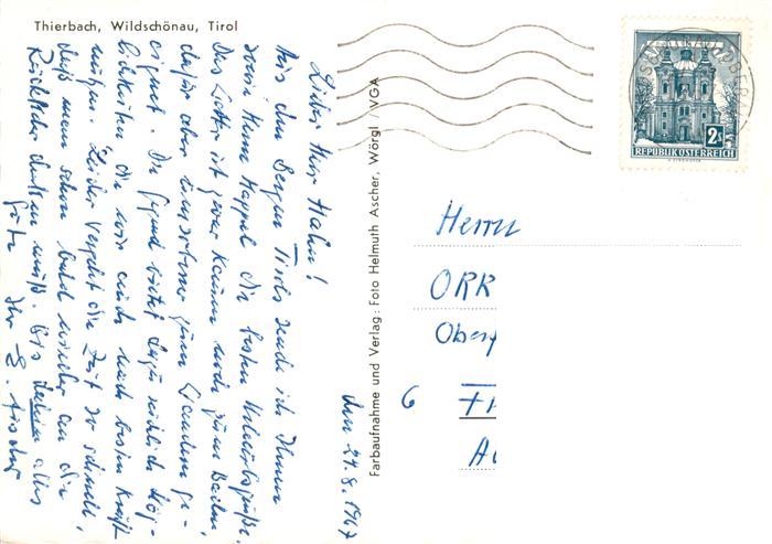 alte Postkarte Thierbach Wildschoenau Tirol AT Panorama Kirche postalisch gelaufen Erhaltung siehe scans [WerneD78]