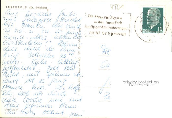 71978446 alte Postkarte Thierfeld Ortsansicht mit Kirche postalisch gelaufen Erhaltung siehe scans KatCode: 11110014193130