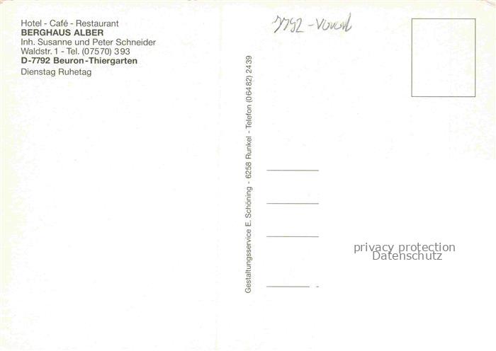 74104302 Thiergarten Beuron Hotel Café Restaurant Berghaus Alber Gastraum Terrasse postalisch nicht gelaufen Erhaltung siehe scans [FriedD77] Frie Katcode 11110008437005