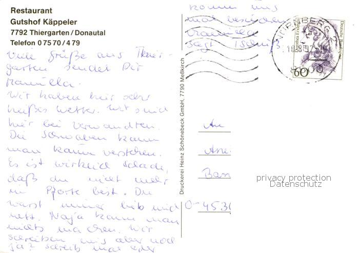 73829167 alte Postkarte Thiergarten Beuron Restaurant Gutshof Kaeppeler Teilansichten postalisch gelaufen Erhaltung siehe scans [FriedD77] KatCode: 11110008437005