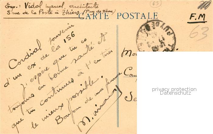 13570846 carte postale Thiers Usines au pied de Margeride postalisch gelaufen Erhaltung siehe scans [PaolaD17] KatCode: 11170063563430