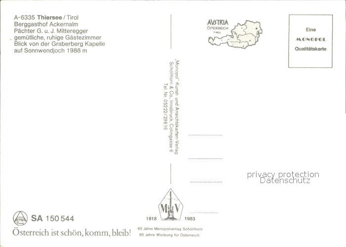 72310887 Thiersee Ackeralm postalisch nicht gelaufen Erhaltung siehe scans KatCode: 11390335070527