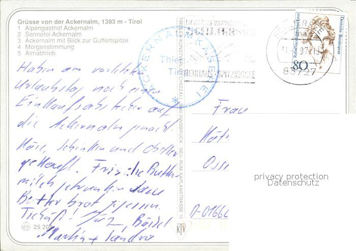 72207559 alte Postkarte Thiersee Alpengasthof und Sennerei Ackernalm Guttertspitze Wegekreuz im Sonnenaufgang Almabtrieb postalisch gelaufen Erhaltung siehe scans KatCode: 11390335070527
