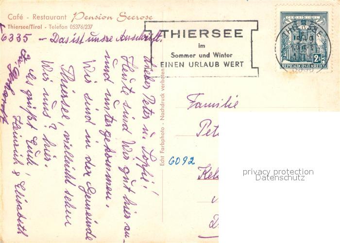 73591840 alte Postkarte Thiersee Cafe Restaurant Pension Seerose Terrasse postalisch gelaufen Erhaltung siehe scans [FriedD77] KatCode: 11390335070527
