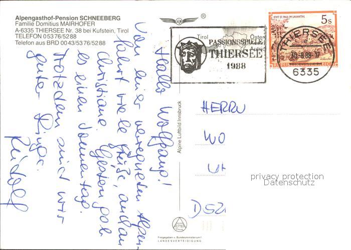 71860197 alte Postkarte Thiersee Fliegeraufnahme postalisch gelaufen Erhaltung siehe scans KatCode: 11390335070527