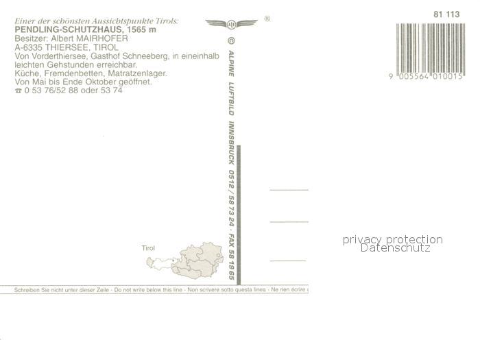 73596483 Thiersee Fliegeraufnahme Pendling Schutzhaus postalisch nicht gelaufen Erhaltung siehe scans [LiesaD40] KatCode: 11390335070527