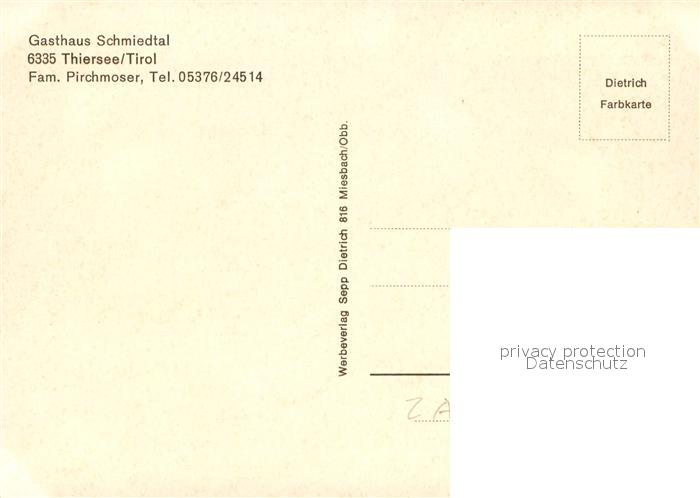 73641485 Thiersee Gasthaus Schmiedtal Alpen postalisch nicht gelaufen Erhaltung siehe scans [FriedD77] KatCode: 11390335070527