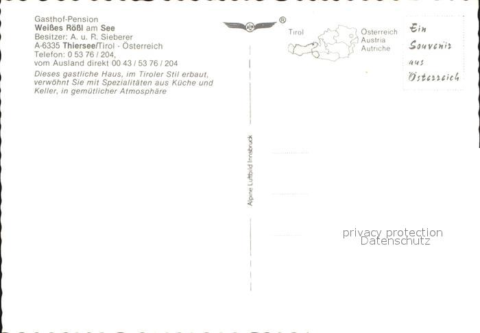 72565953 Thiersee Gasthof Weisses Roessl am See postalisch nicht gelaufen Erhaltung siehe scans [WerneD78] KatCode: 11390335070527