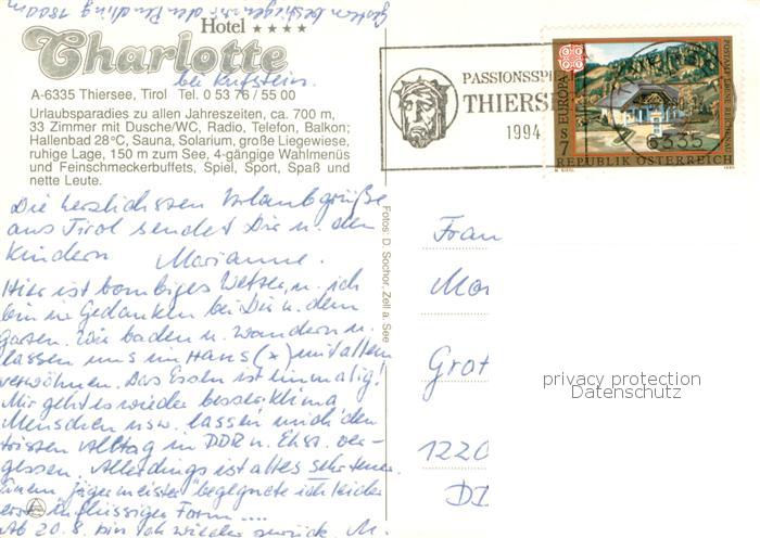 73752336 alte Postkarte Thiersee Hotel Charlotte postalisch gelaufen Erhaltung siehe scans [WerneD78] KatCode: 11390335070527