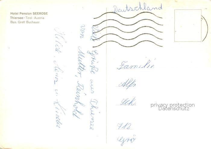 73742549 alte Postkarte Thiersee Hotel Pension Seerose postalisch gelaufen Erhaltung siehe scans [FriedD77] KatCode: 11390335070527