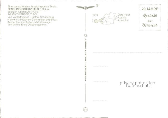 72565955 Thiersee Pendling Schutzhaus Gipfelkreuz Sonnwendjoch Kaisergebirge postalisch nicht gelaufen Erhaltung siehe scans [WerneD78] KatCode: 11390335070527