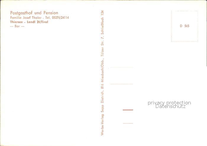 72465097 Thiersee Postgasthof und Pension Bar postalisch nicht gelaufen Erhaltung siehe scans KatCode: 11390335070527