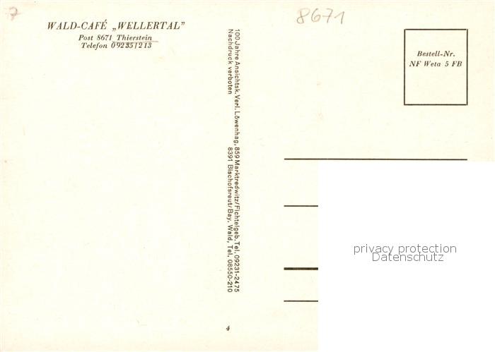 73845618 Thierstein Bayern Wald Cafe Wellertal postalisch nicht gelaufen Erhaltung siehe scans [FriedD77] KatCode: 11110009479159