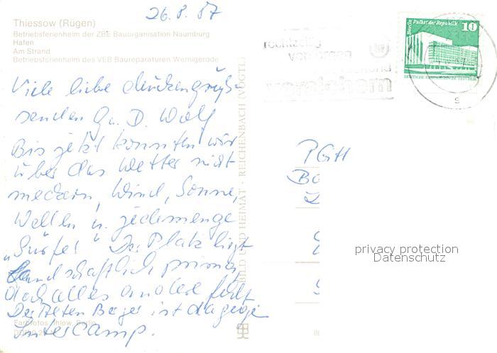 72972757 alte Postkarte Thiessow Ostseebad Ruegen Betriebsferienheime Hafen Strand postalisch gelaufen Erhaltung siehe scans [FriedD77] KatCode: 11110013061040