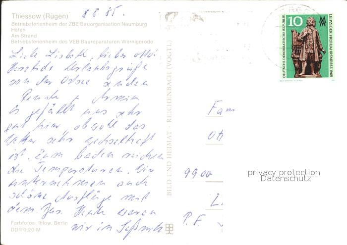 72333003 alte Postkarte Thiessow Ostseebad Ruegen Hafen Strand postalisch gelaufen Erhaltung siehe scans KatCode: 11110013061040