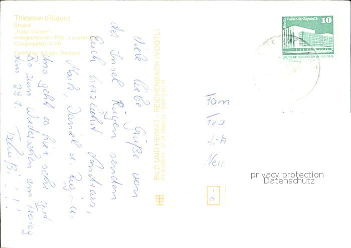 72009144 alte Postkarte Thiessow Ostseebad Ruegen Strand Haus Ostsee Bootsanlegestelle Campingplatz postalisch gelaufen Erhaltung siehe scans KatCode: 11110013061040