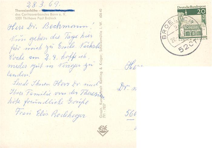 73914208 alte Postkarte Thilhove Ruppichteroth Theresienhoehe Muettererholungsheim des Caritasverbandes Bonn e.V. postalisch gelaufen Erhaltung siehe scans [FriedD77] KatCode: 11110005382052
