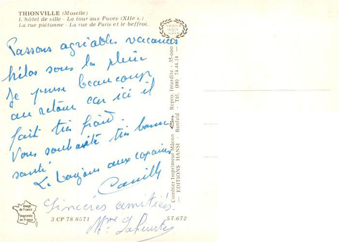 13948457 Thionville Diedenhofen 57 Hôtel de Ville Tour aux Puces Rue piétonne Rue de Paris Beffroi postalisch nicht gelaufen Erhaltung siehe scans [FriedD77] Frie Katcode 11170057757672