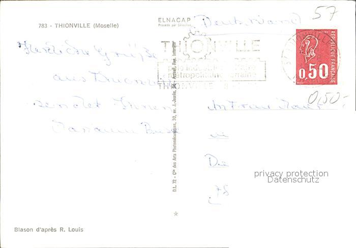 12449536 carte postale Thionville Fliegeraufnahme Brueckenpartie Hotel de Ville postalisch gelaufen Erhaltung siehe scans KatCode: 11170057757672