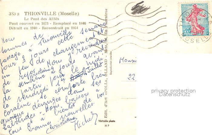 13503396 carte postale Thionville Le Pont des Allies Moselle postalisch gelaufen Erhaltung siehe scans [WerneD78] KatCode: 11170057757672