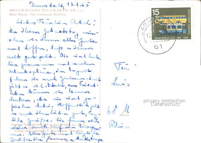 alte Postkarte Thoma Hans Das wandernde Baechlein Bruckmann-Verlag-Nr. 174 postalisch gelaufen