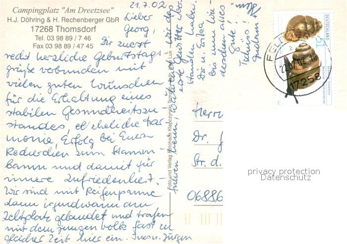 73613655 alte Postkarte Thomsdorf Boitzenburger Land Fliegeraufnahme Campingplatz am Dreetzsee postalisch gelaufen Erhaltung siehe scans [PaolaD17] KatCode: 11110012073069