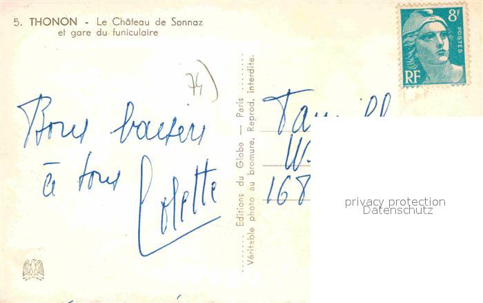 12705952 Thonon-les-Bains Chateau de Sonnaz Gare du funiculaire postalisch nicht gelaufen Erhaltung siehe scans [FriedD77] KatCode: 11170074474281