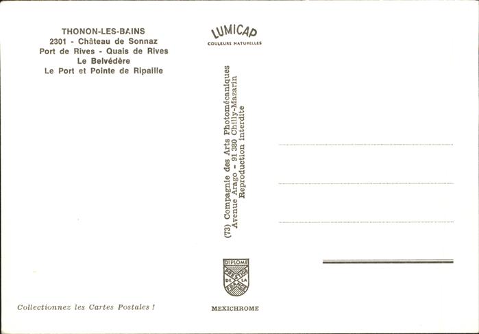 11443174 Thonon-les-Bains Chateau de Sonnaz Port Quais de Rives Hotel Le Belvedere Pointe de Ripaille Wappen KatCode 11170074474281